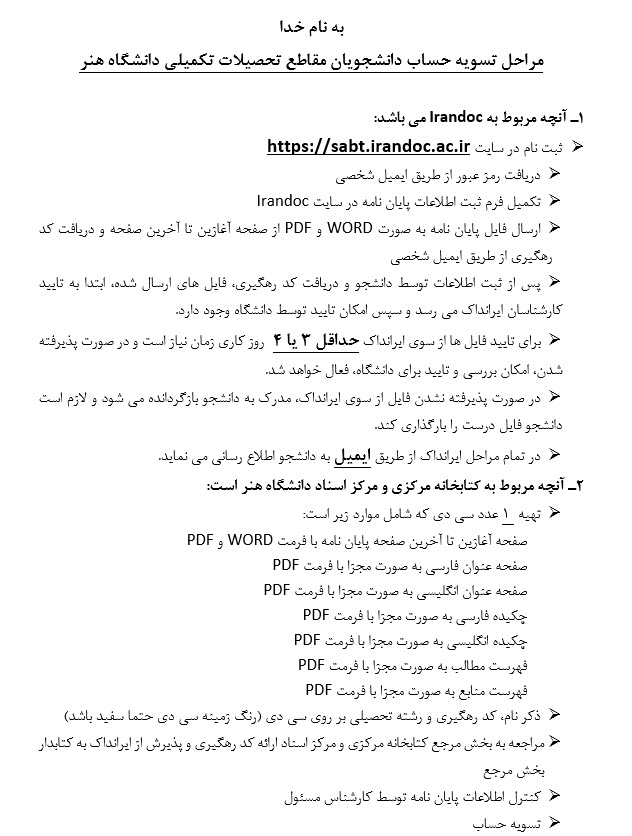 پايان نامه هاي دانشگاه هنر، كتاب ها و مقالات فارسي و لاتين در آدرس digitallib.art.ac.ir قرار دارد. ورود به حساب كاربري الزاميست(نام كاربري دانشجويان: ....