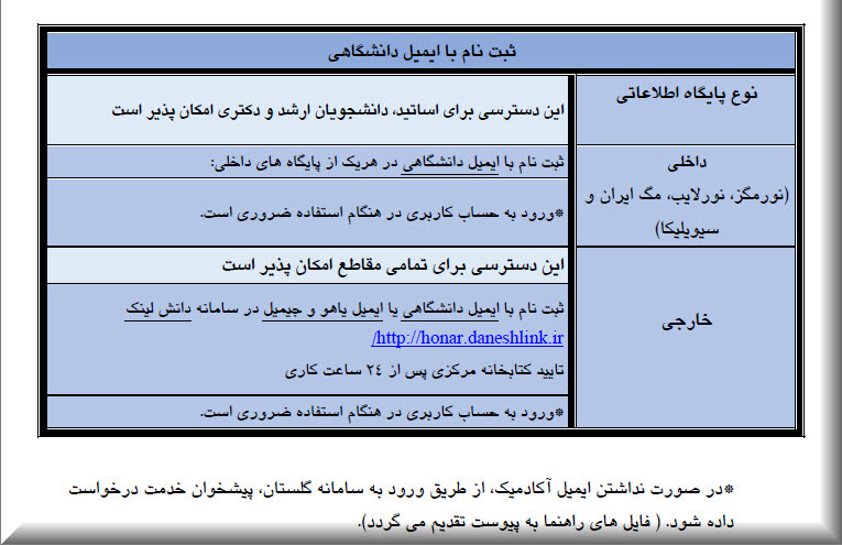 - ثبت نام با ايميل دانشگاهي در هريك از پايگاه هاي داخلي