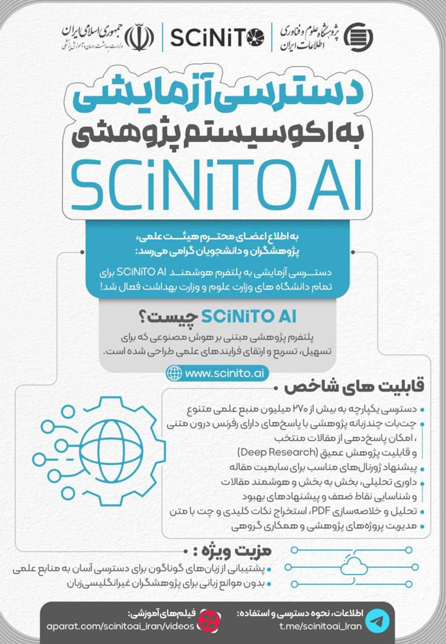 دسترسي به پلتفرم پژوهشي مبتني بر هوش مصنوعي SCiNiTO AI